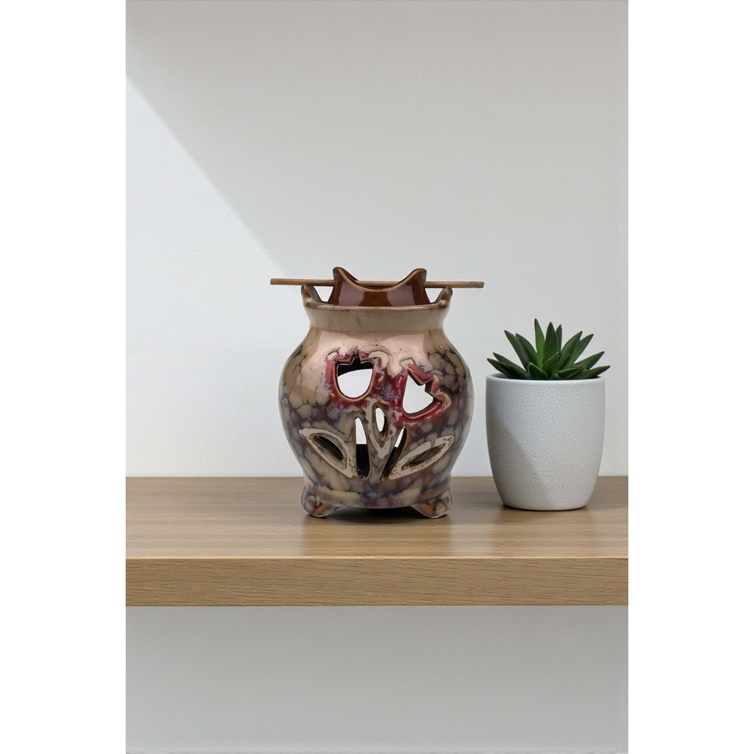 Kaliteli seramik malzemeden üretilen buhurdanlık, hem dekoratif görünümüyle hem de işlevselliğiyle yaşam alanlarına zarif bir dokunuş katar.