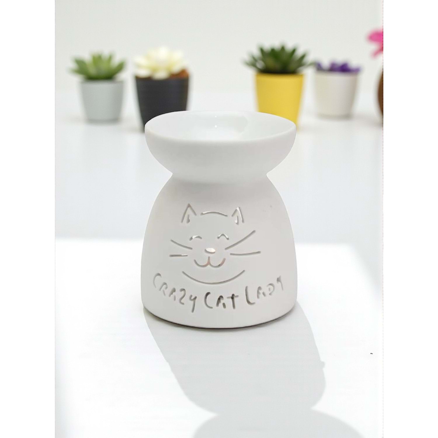 Tatlı Kedi Figürlü Seramik Buhurdanlık - Kedi Severlere Özel Dekorasyon ve Aromaterapi
