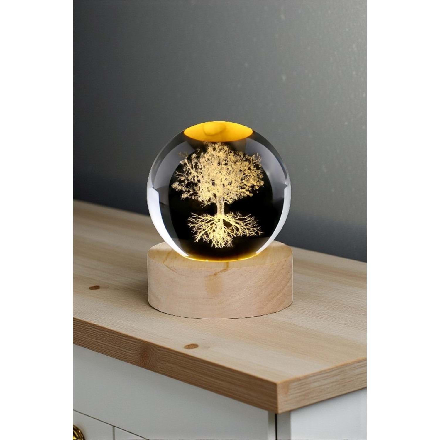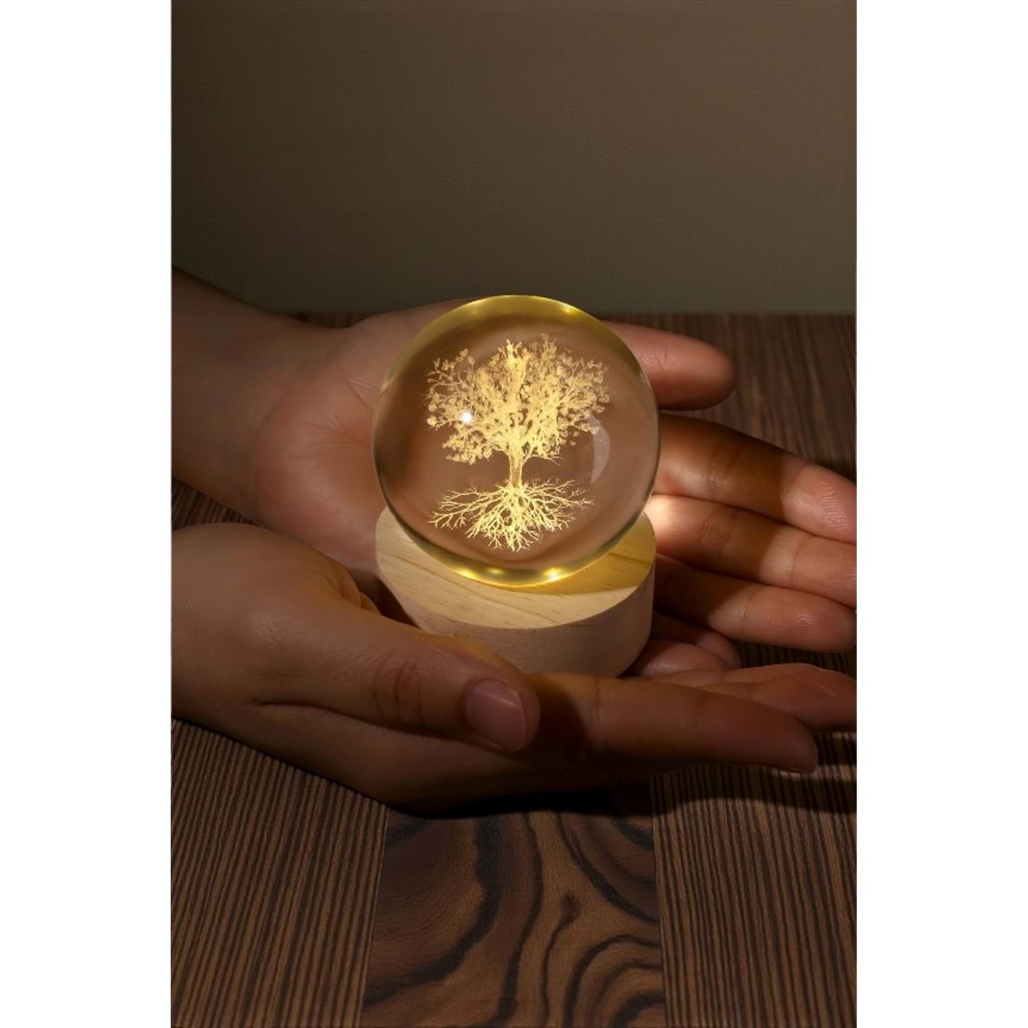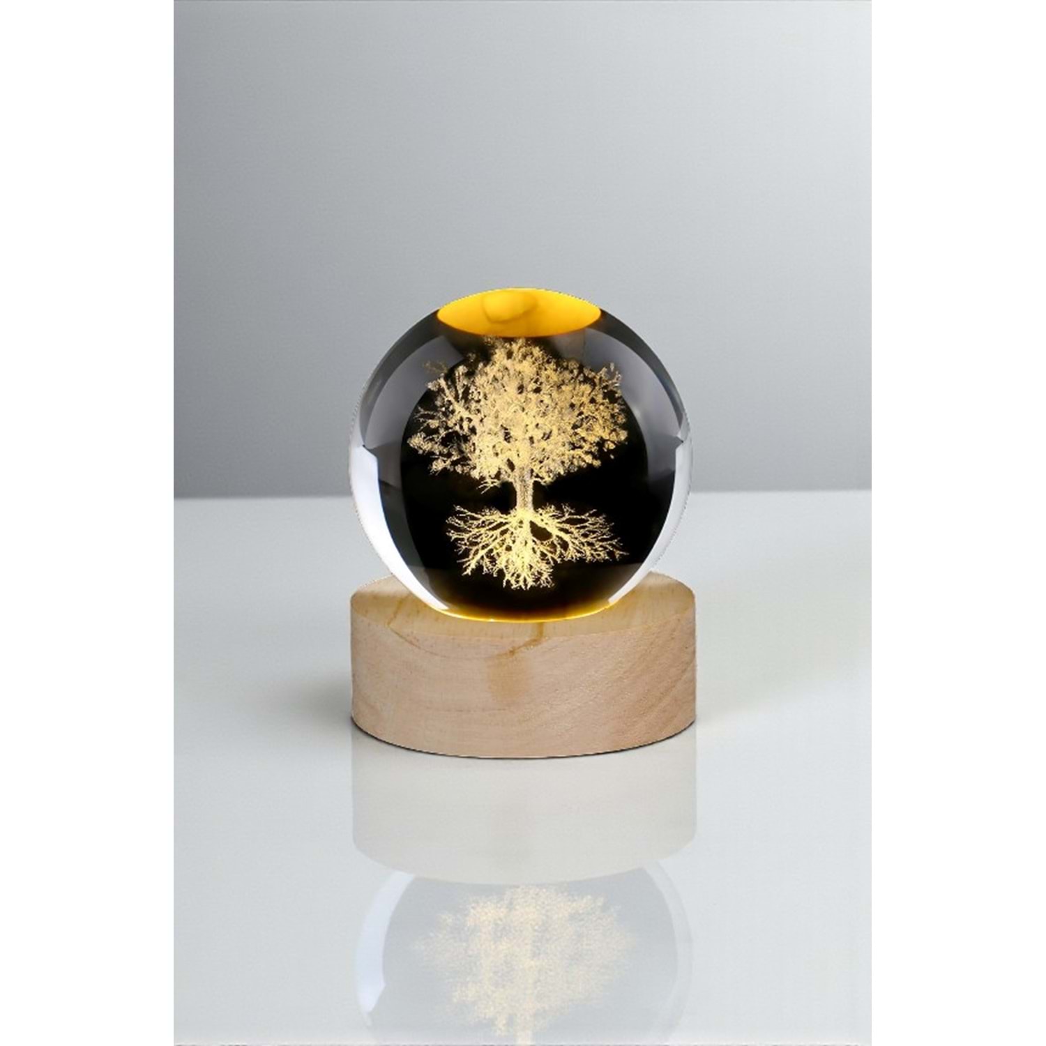 Hayat Ağacı Tasarımlı 3D Kristal Cam Küre, detaylı lazer işleme tekniği sayesinde berrak kristal içinde üç boyutlu bir görüntü oluşturur.