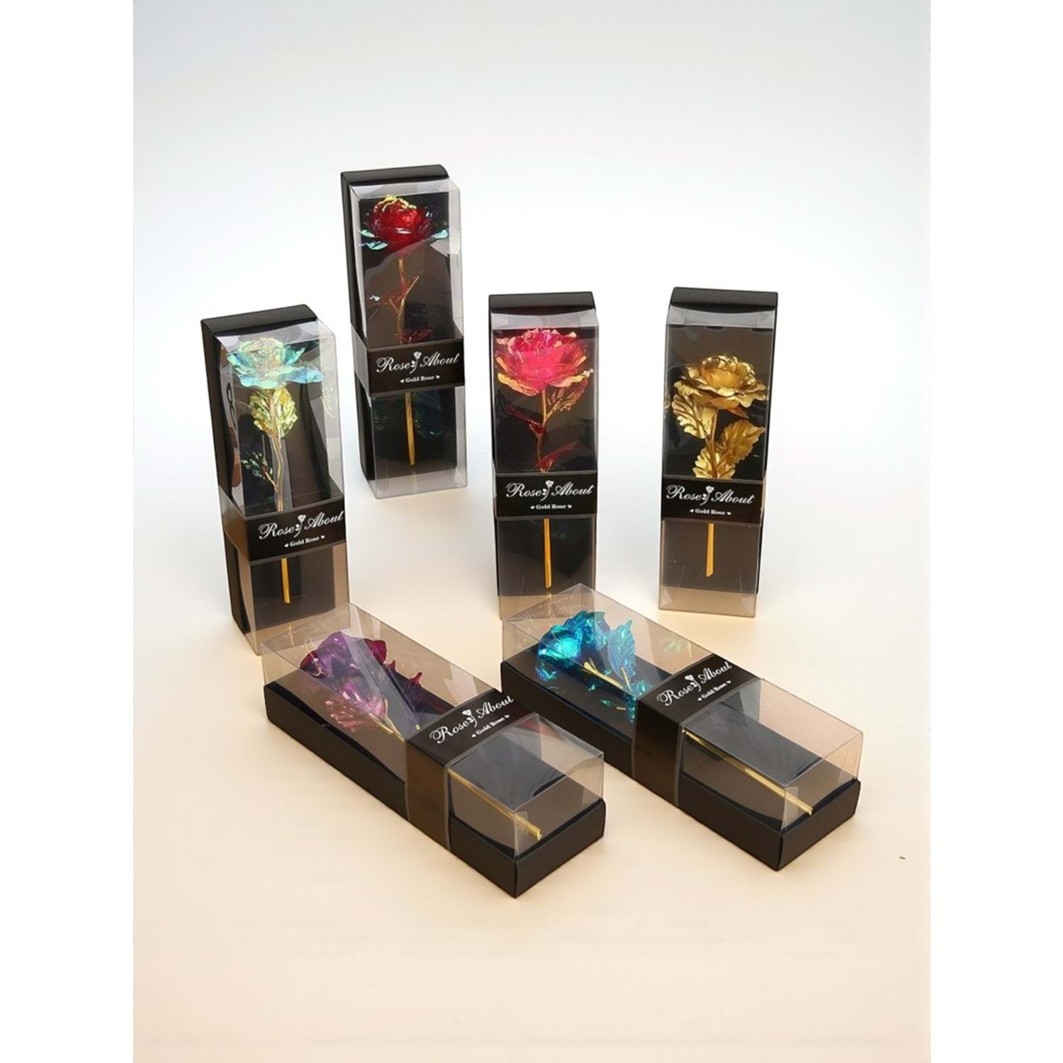 Bu göz alıcı Işıklı Sonsuzluk Gülü, solmayacak ve ölümsüz bir aşkı temsil eder. Gülün taç yaprakları ve yaprakları, parlak ve yanardöner mavi/turkuaz tonlarında özel bir folyo kaplamaya sahiptir ve içinde titreşen LED ışıklar ile aydınlatılmıştır. Işık yandığında gül, adeta bir galaksi görünümü alarak büyüleyici bir ambiyans yaratır.