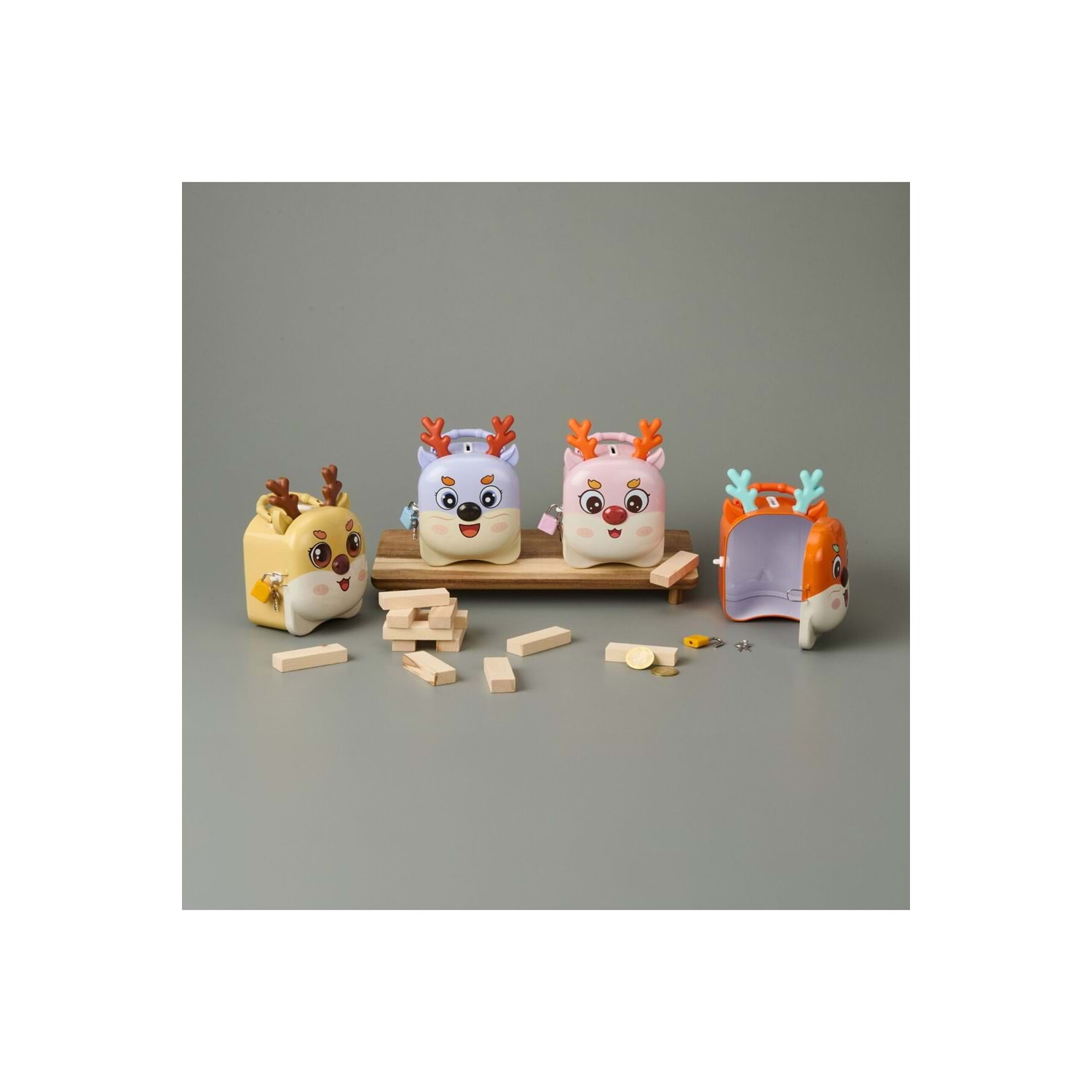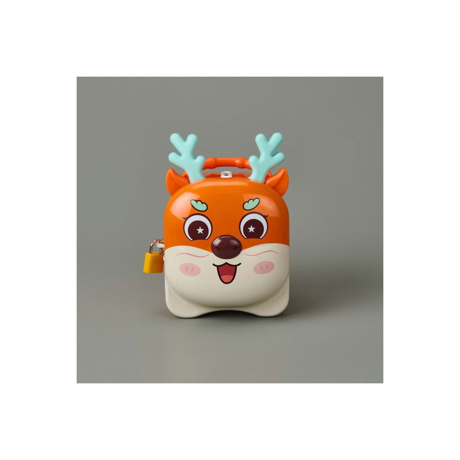 Geyik Tasarımlı Kilitli Metal Kumbara – 16x10 cm, Renkli, Çocuklar İçin
