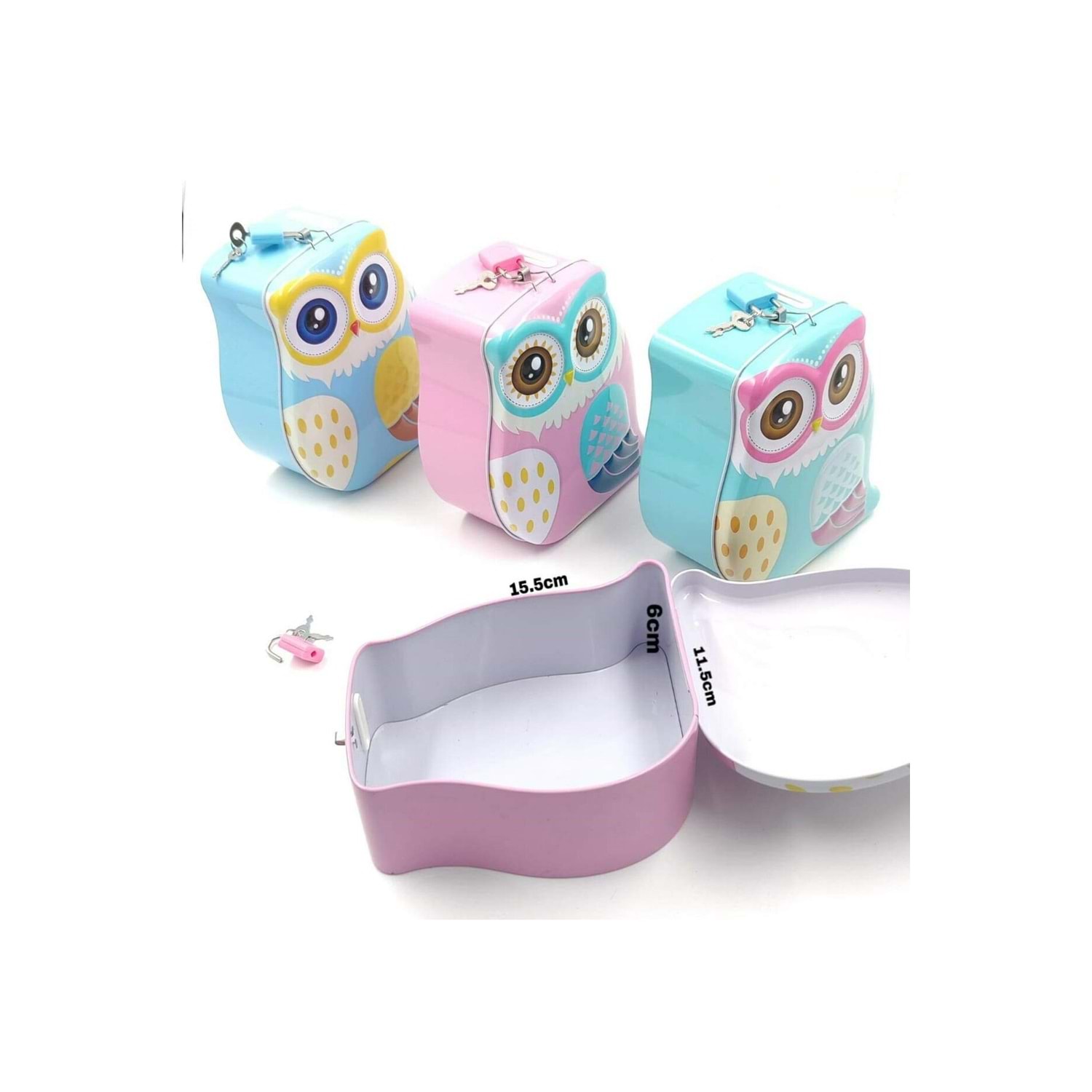 Sevimli Baykuş Kumbara – Kilitli Metal Para Kutusu, 15.8x11.6x6.5 cm, Çocuklar İçin