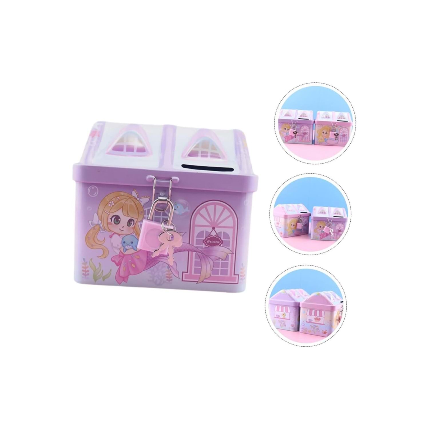 Sevimli Deniz Kızının Evi Tasarımlı Kilitli Metal Kumbara – 11.9x10.4x9.4 cm,Dayanıklı