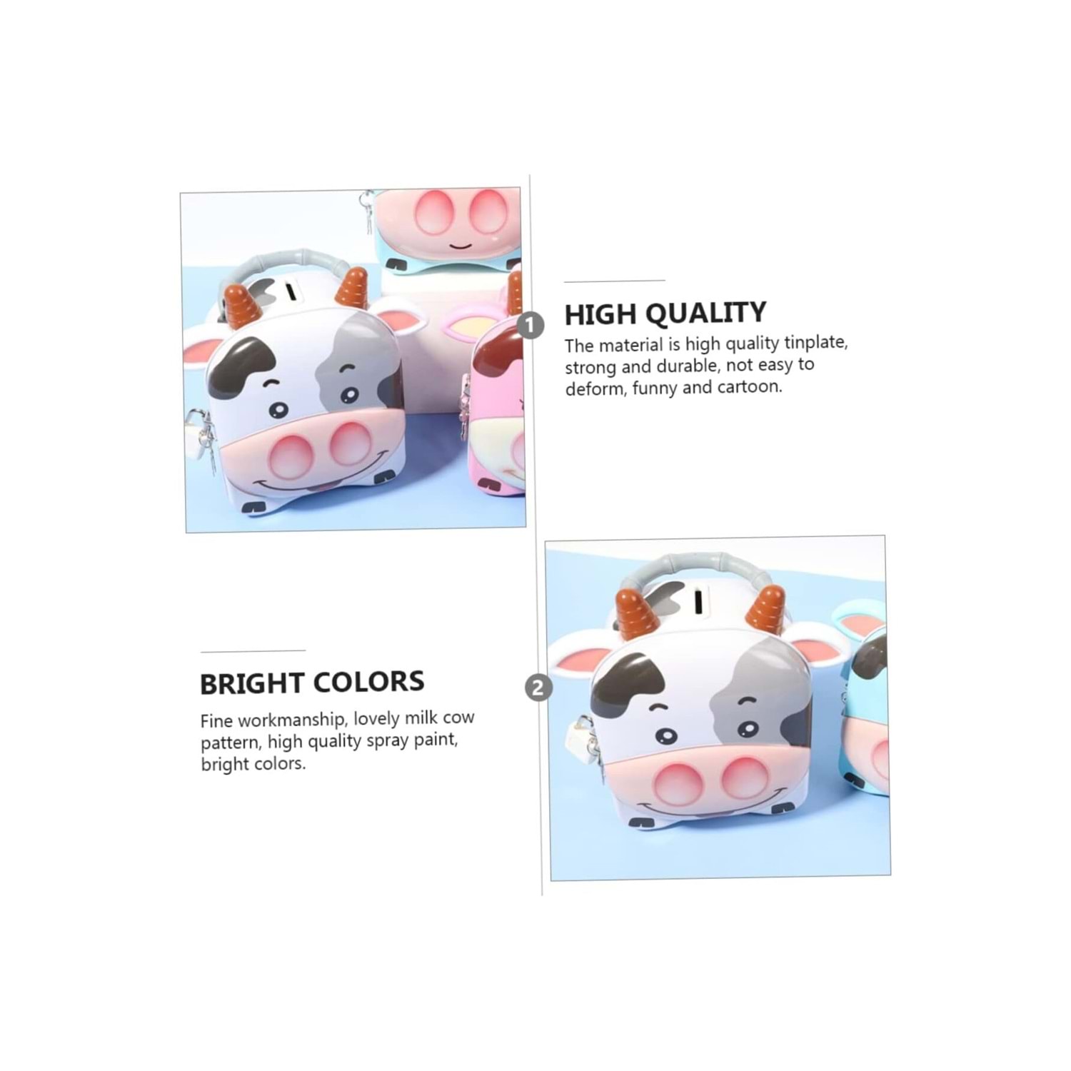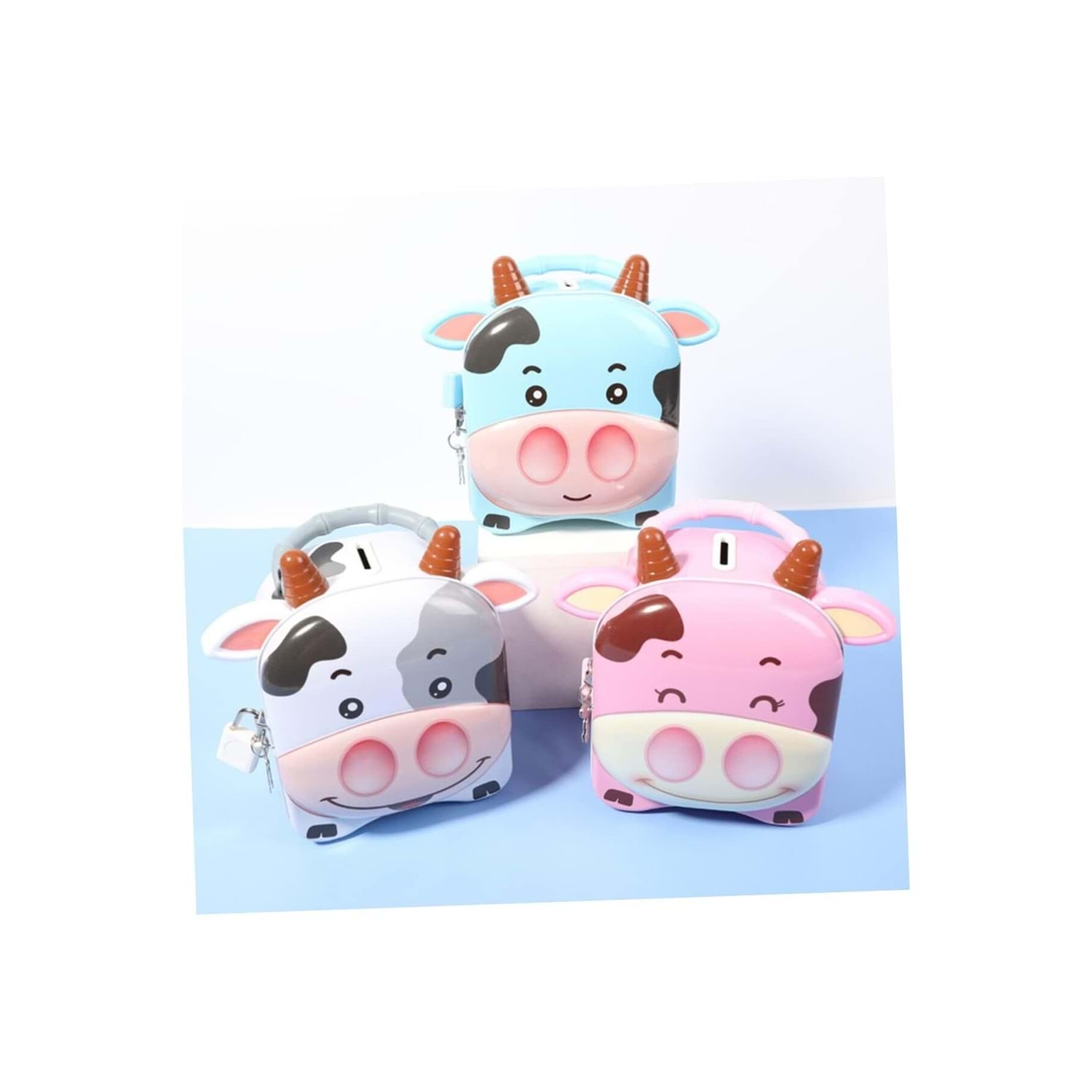 Sevimli İnek Tasarımlı Kilitli Metal Kumbara – 14x10x14 cm, Renkli, Çocuklar İçin