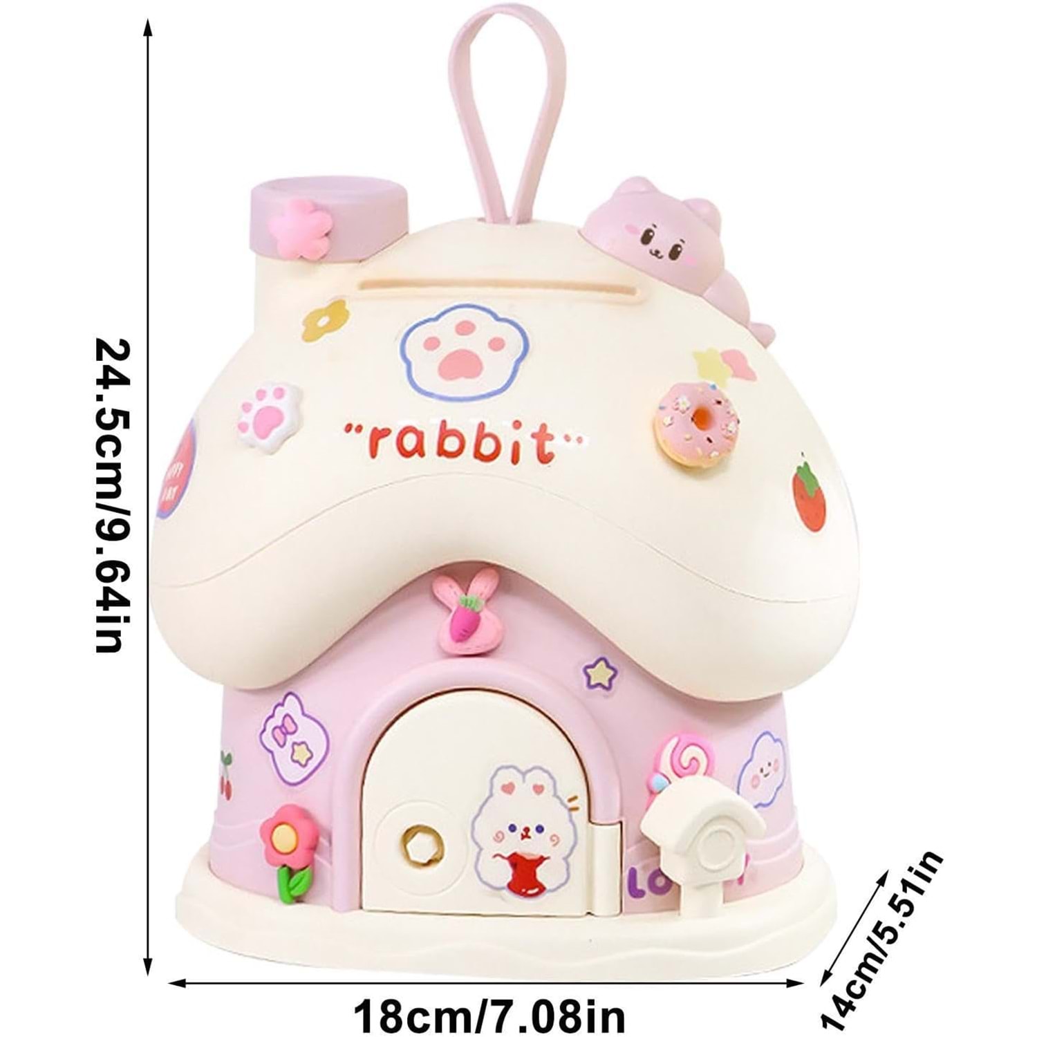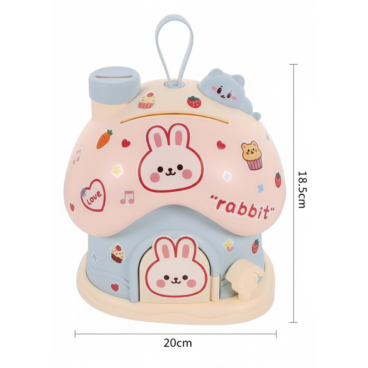 Sevimli Tavşan Ev Kumbara, LED ışığıyla çocuk odalarına sıcak bir atmosfer katar. Sticker hediyesiyle eğlenceli hale gelen bu ürün, hem gece lambası hem de dekoratif kumbara olarak kullanılabilir. Çocuklar için ideal bir hediye seçeneğidir.