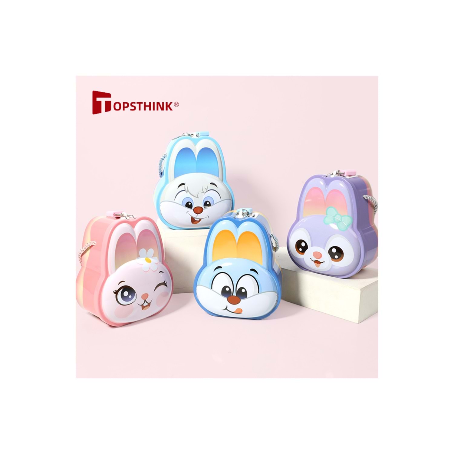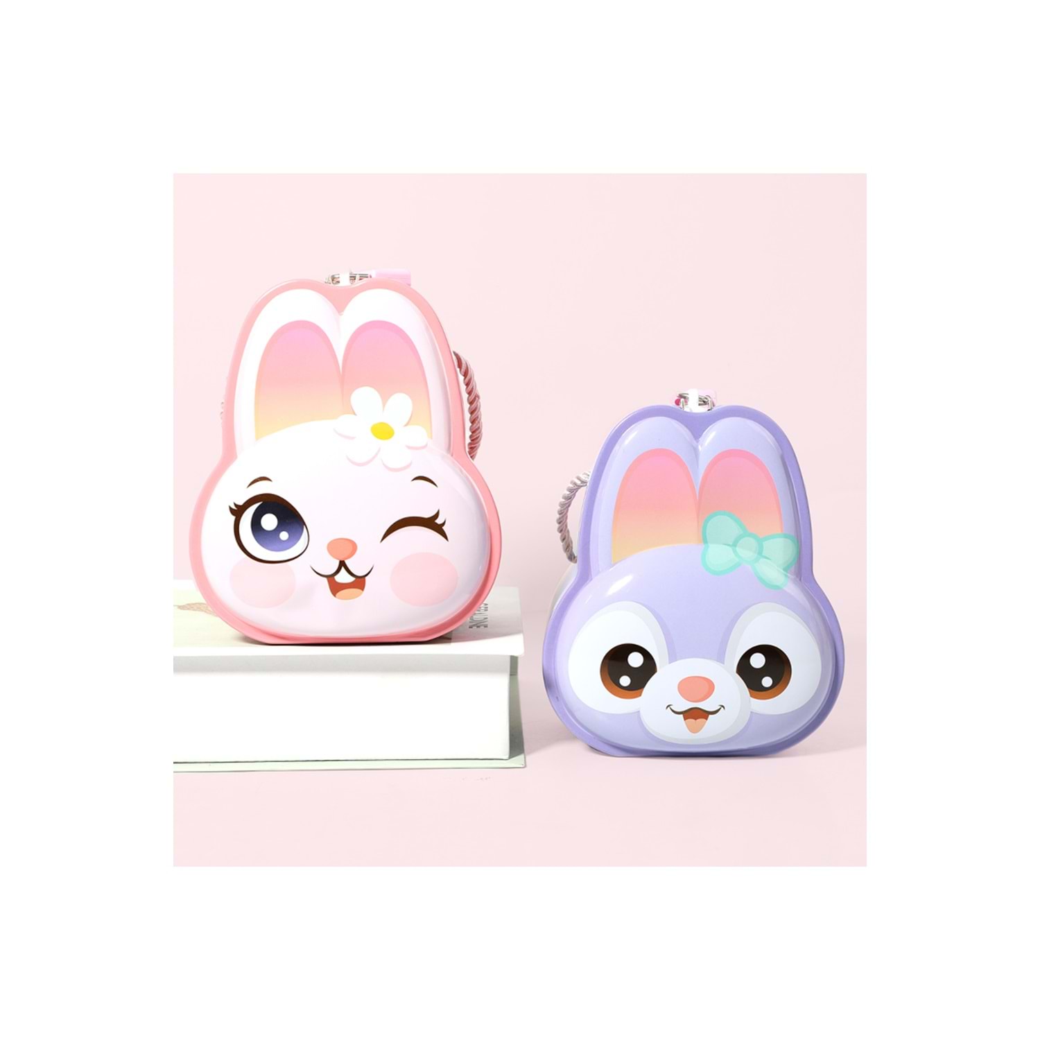 Sevimli Tavşan Tasarımlı Kilitli Metal Kumbara – 12.5x9x14.5 cm, Renkli, Dayanıklı