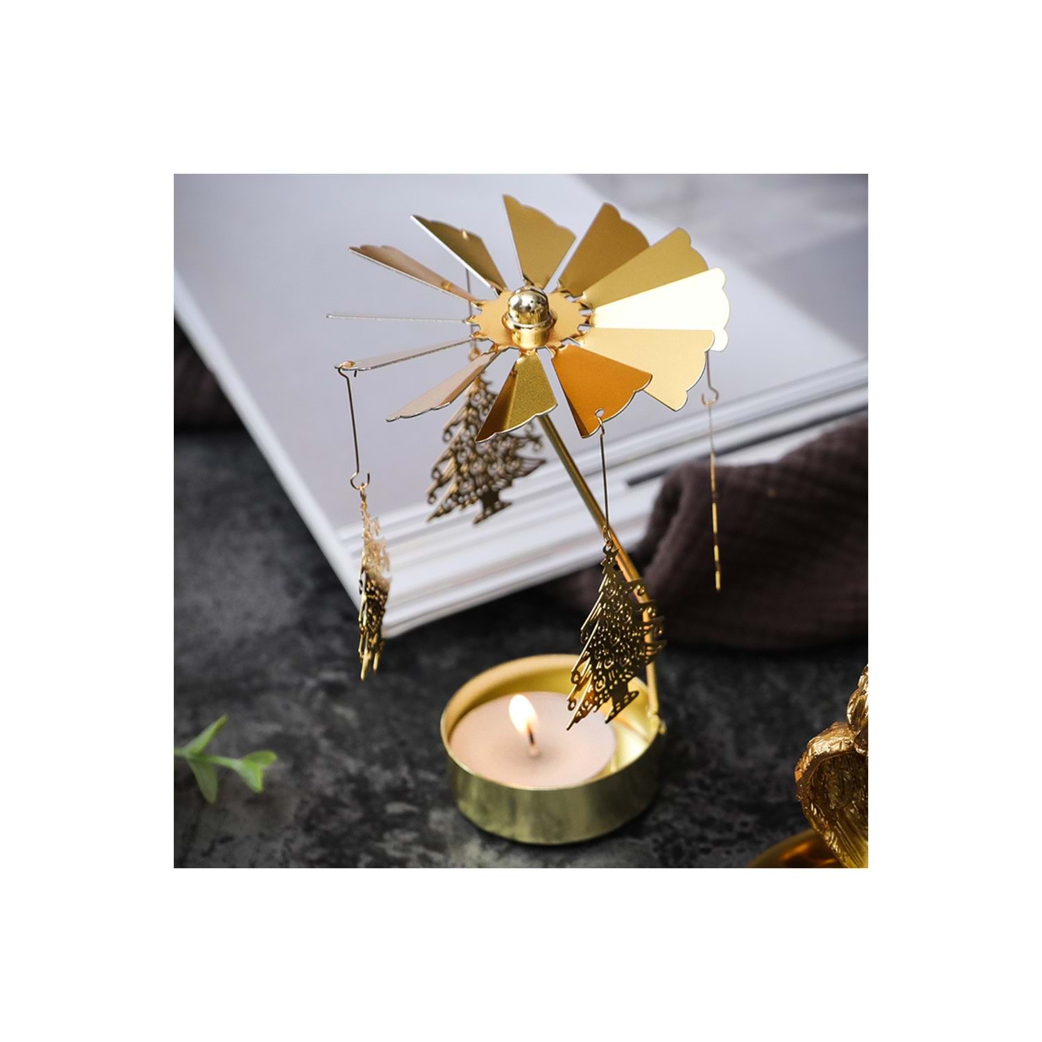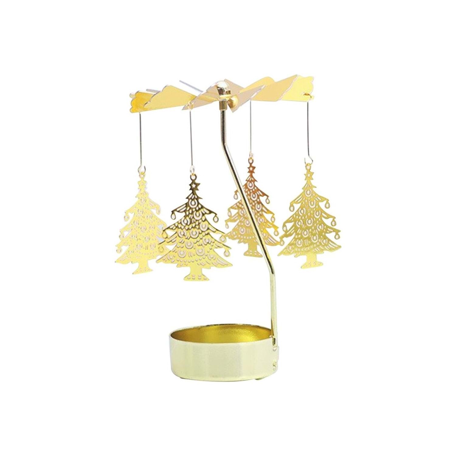 Isı İle Dönen Metal Mumluk – Çam Ağacı Modeli, Altın Renk, Yılbaşı ve Yeni Yıl Dekoratif Mumluk