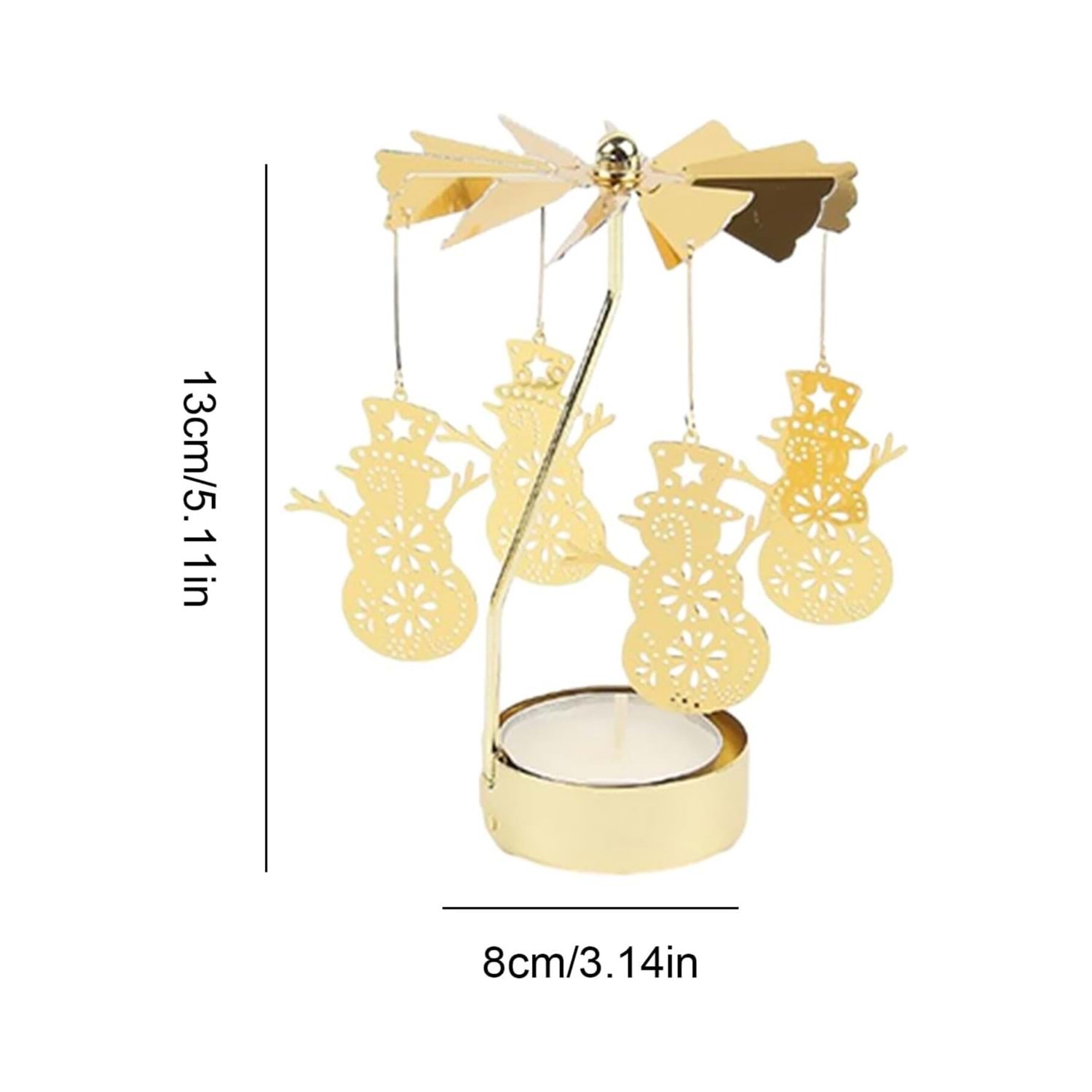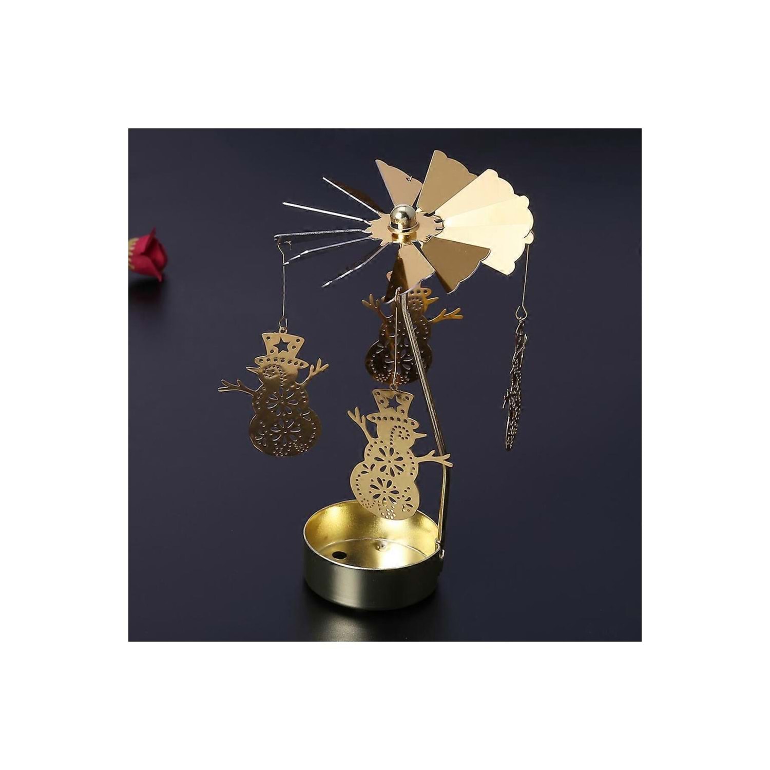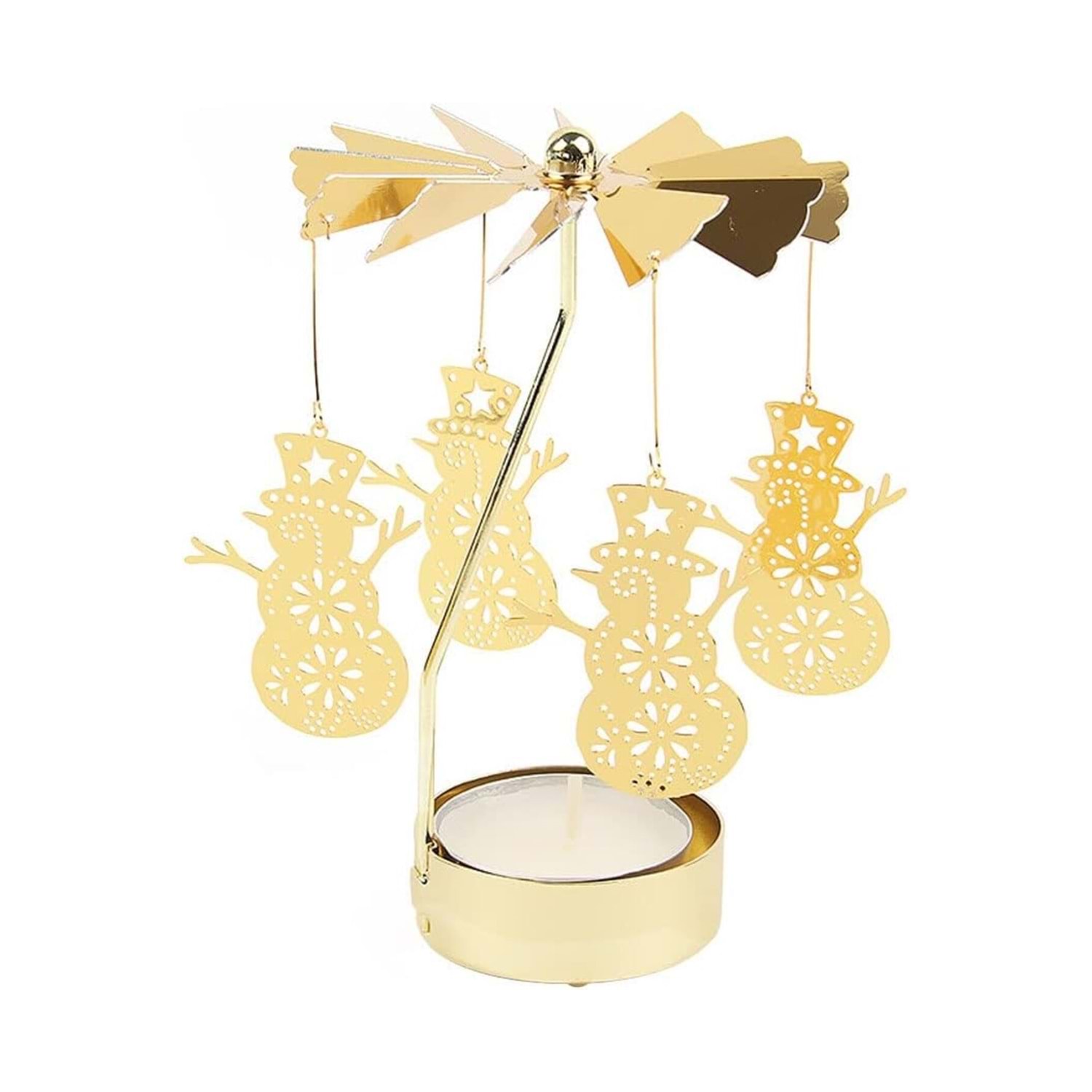 Isı İle Dönen Metal Mumluk – Kardan Adam Modeli, Altın Renk, Yılbaşı ve Kış Temalı Dekoratif Mumluk
