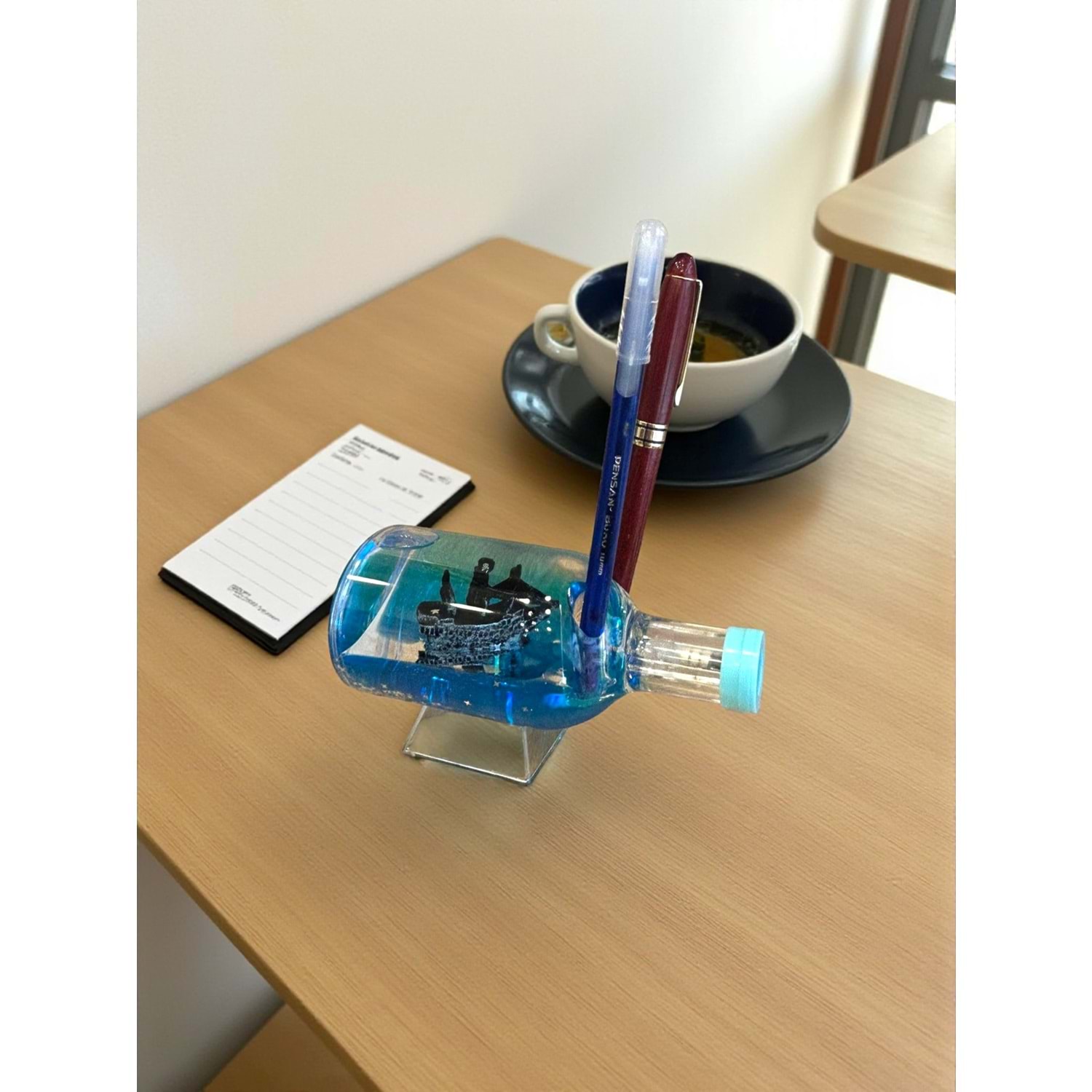 Bu eşsiz Gemi Şeklinde Sulu Kalemlik, sadece kalemlerinizi düzenlemekle kalmaz, aynı zamanda göz alıcı, açılıp kapanabilen ışık özelliğiyle masaüstünüzü aydınlatır. Şeffaf gövdesinin alt kısmında bulunan sıvı ve figürler, hafifçe sallandığında sakinleştirici bir dalga hareketi sunar. Bu ışıklı ve hareketli su efekti, stresi azaltmak ve çalışma ortamınıza huzur katmak için mükemmeldir.