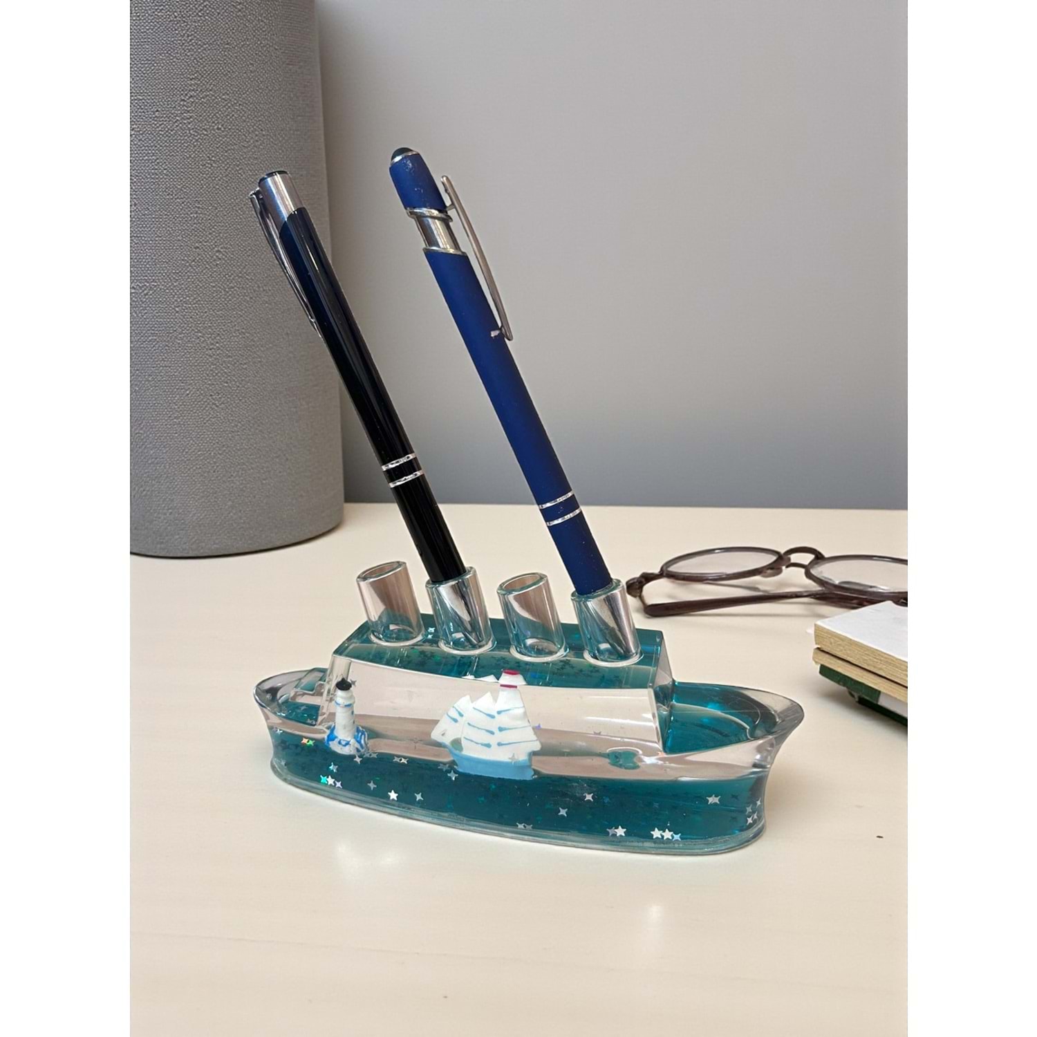 Bu eşsiz Yolcu Gemisi Şeklinde Sulu Kalemlik, kalemlerinizi düzenlemenin yanı sıra, göz alıcı sulu akış efektiyle çalışma ortamınıza zarif bir atmosfer katar. Şeffaf gövdesinin alt kısmında bulunan mavi sıvı ve figürler, hafifçe sallandığında sakinleştirici bir dalga ve pırıltı hareketi oluşturur. Bu hareketli su efekti, stresi azaltmak ve masanıza huzur katmak için mükemmeldir.