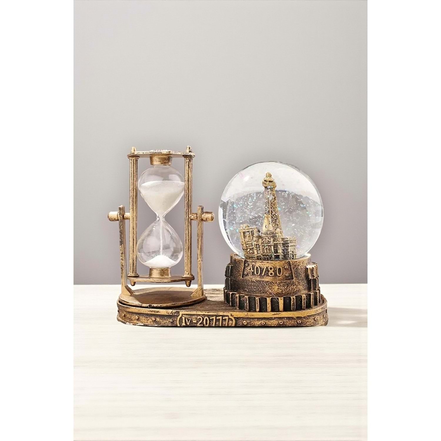Çift Fonksiyonlu Tasarım: Hem zamanı takip etmeye yardımcı olan kum saati hem de sallandığında pırıltılı bir kar fırtınası oluşturan dekoratif bir küre sunar. (SEO: İkili Masa Dekoru, Kum Saati Kar Küresi)