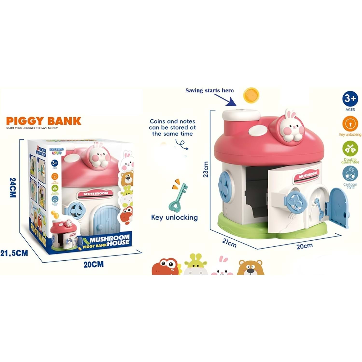 Sevimli Tavşanlı Mantar Tasarımı: Göz alıcı ve eğlenceli, üstünde oyuncu bir tavşan figürü bulunan bu mantar şeklindeki kumbara, çocuğunuzun dikkatini anında çekecek ve para biriktirmeyi keyifli bir deneyime dönüştürecektir.