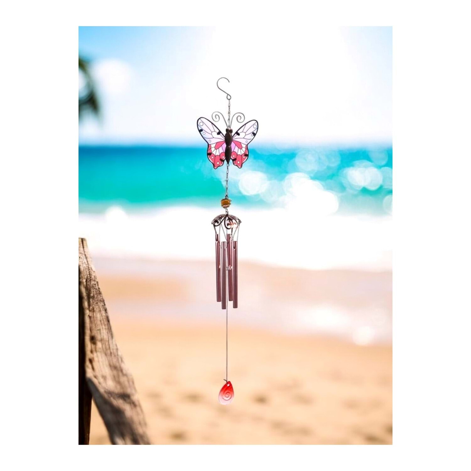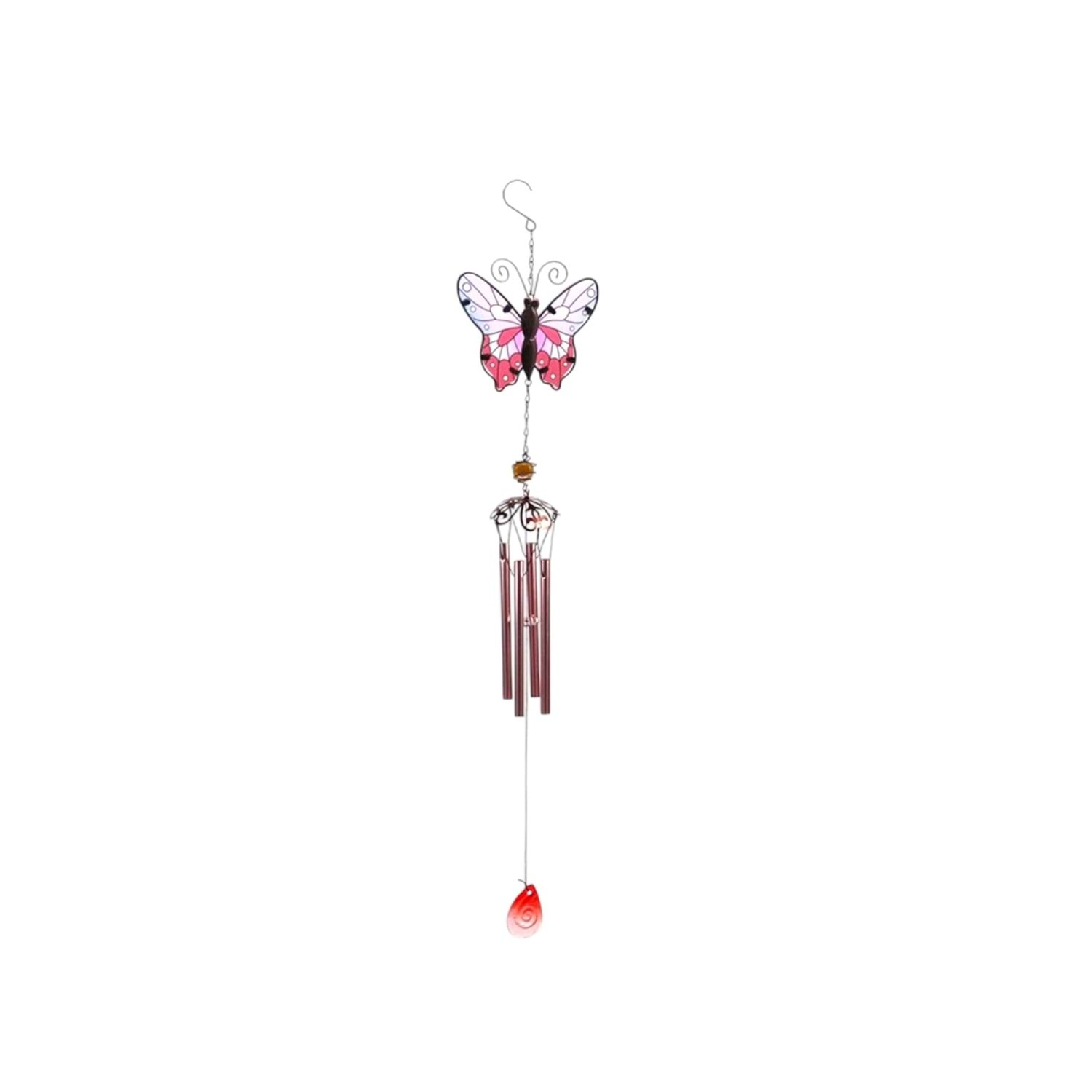 Renkli Kelebek Tasarımlı Rüzgar Çanı Metal Ve Cam Malzeme Dekoratif Rüzgar Çanı