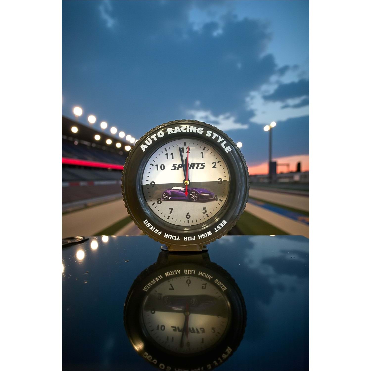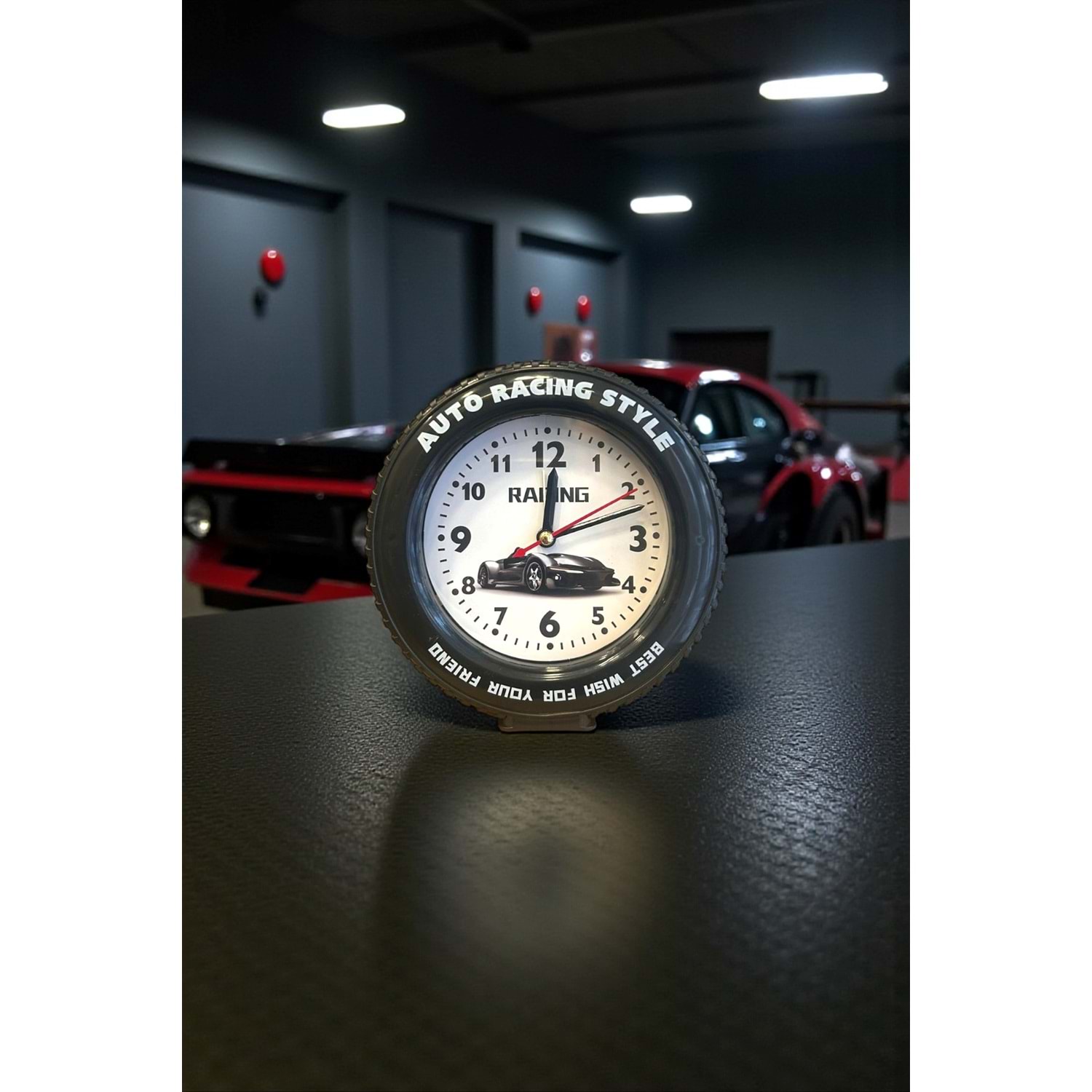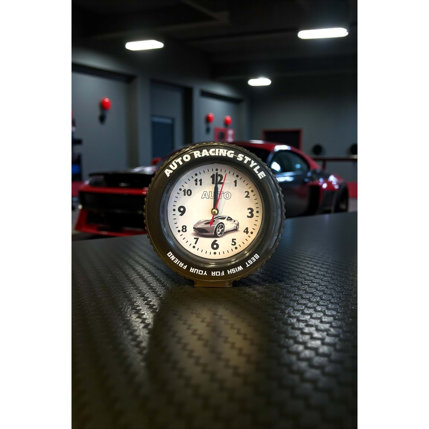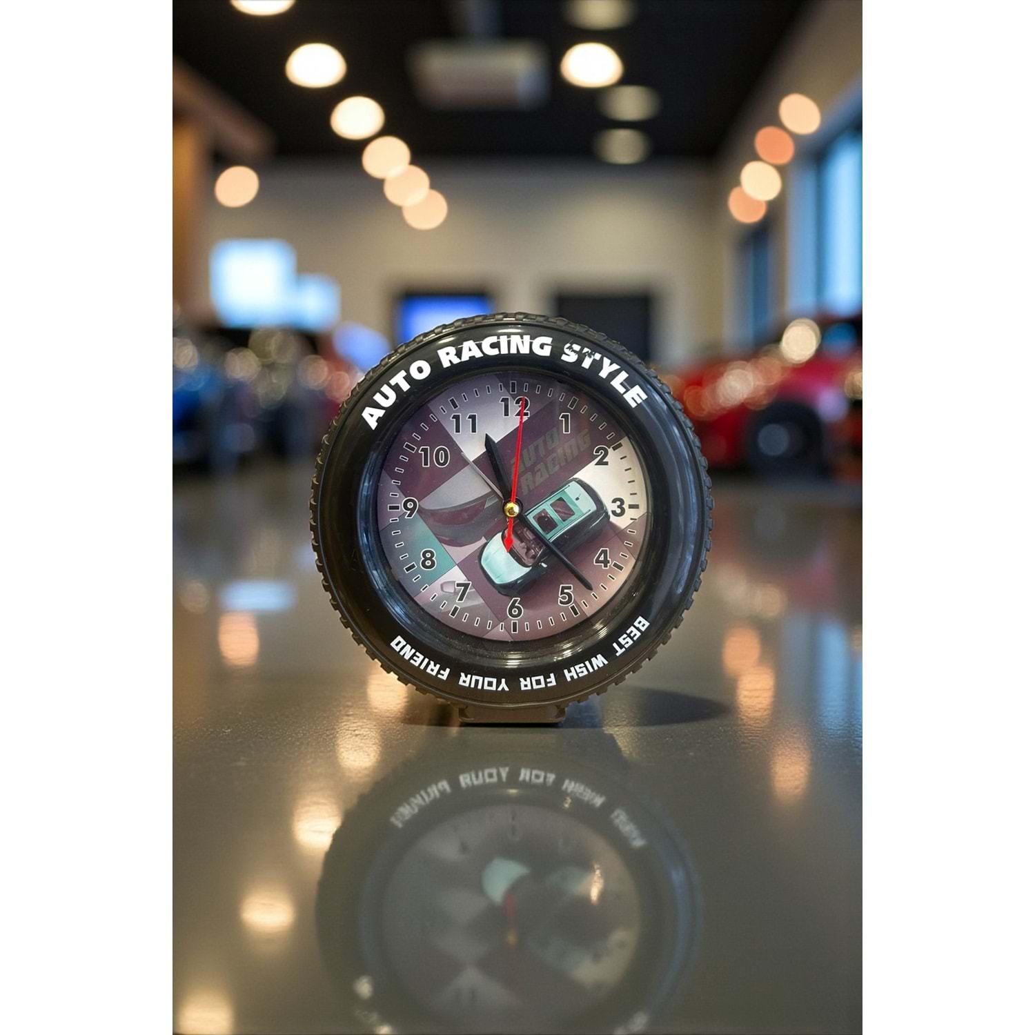 Araba tutkunlarına özel tasarlanan araba tekerleği şeklindeki alarm özellikli masa saati, sportif ve dinamik görünümüyle dikkat çeker. Sert plastik malzemeden üretilmiş dayanıklı gövdesiyle uzun ömürlü kullanım sunar.